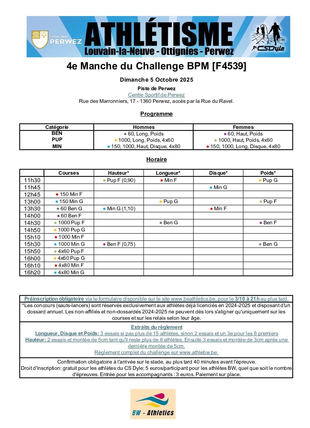 Prévoir le compte juste si possible (5 euros/athlète)