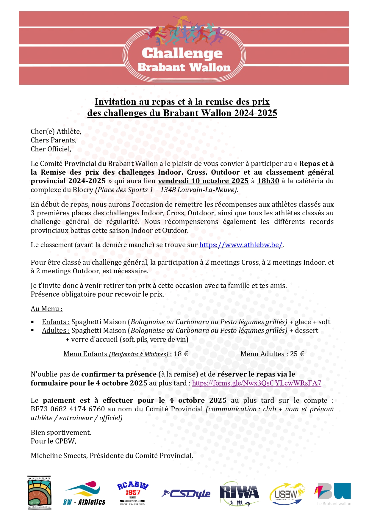 Vendredi 10 octobre - Remise des Prix du Challenge du Brabant Wallon 2024-2025